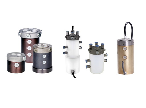 Acoplamentos/Distribuidores Rotativos para elementos hidráulicos de ação simples ou dupla. Os Distribuidores Rotativos transferem o óleo hidráulico de um elemento de máquina estacionário para um elemento de máquina giratório. Dependendo do número de canais, vários elementos hidráulicos/pneumáticos podem ser acoplados. Com possibilidade de passagem de cabeamento elétrico (sinal ou alimentação).